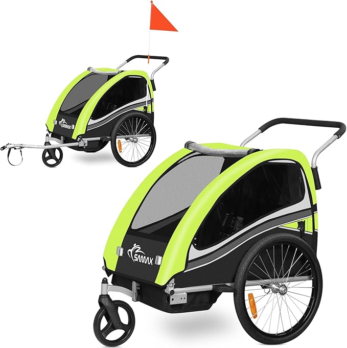 The SAMAX 2-in-1 Children Bike Trailer suits families who want a two-seat trailer with jogger-style conversion and suspension, without paying for a more premium brand-first option.