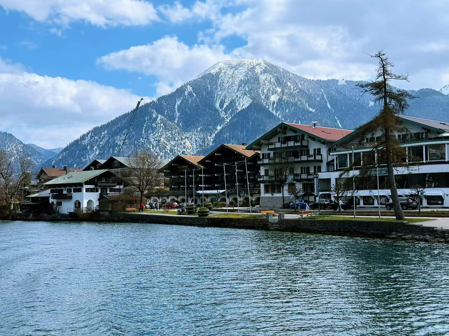 Tegernsee was the day that looked most generous for the least effort. We took the RB57 from Munich, got off at Gmund am Tegernsee instead of the final station, and started with a mostly downhill lakeside walk. The water looked clear enough to make the children want to touch it even in early April, and the mountains still held snow.