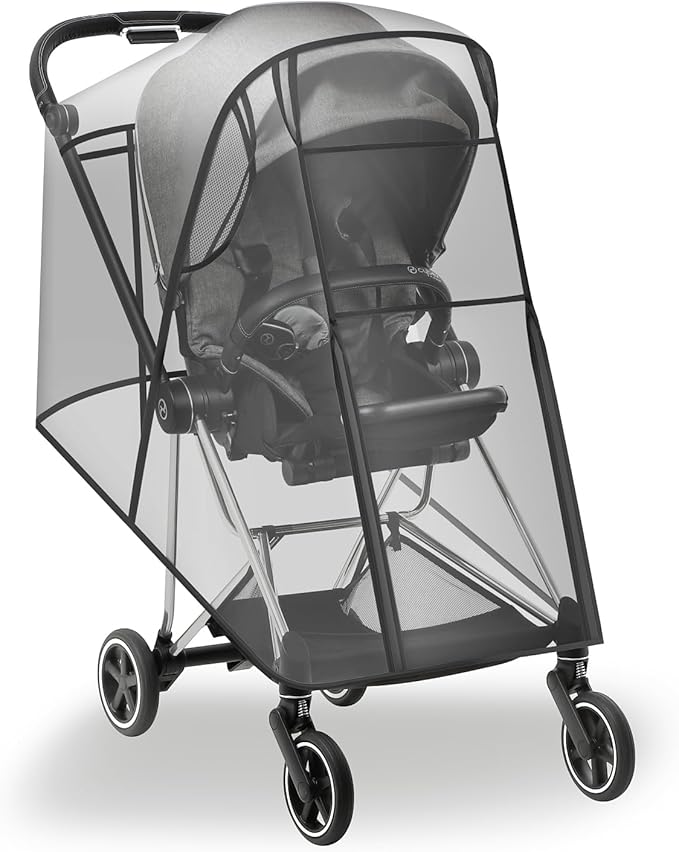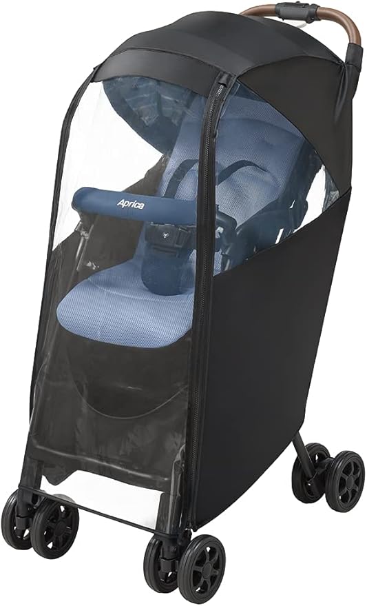 背面式A型・B型ベビーカー向けの丈長めの汎用カバー。足元まで覆いやすく、サイドのメッシュ窓と前面フルオープンのファスナーがあるため、座面を濡らさないこと以上に乗せ降ろしのしやすさを重視する家庭に合います。